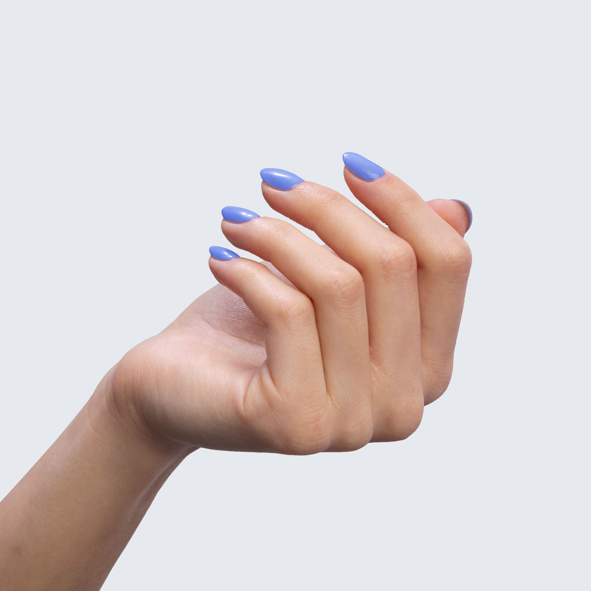 Periwinkle blue. Medium. Opaque. Cool undertone.