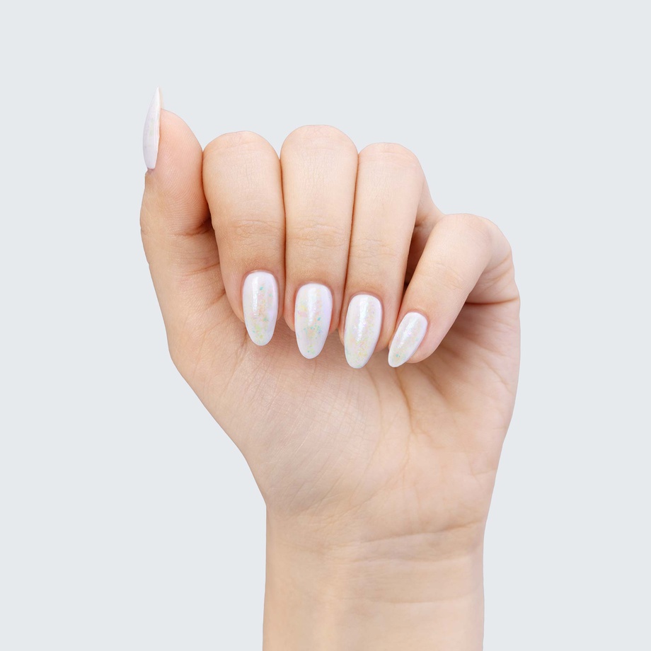 The ethereal allure of PRECIOUS FLAKES makes them a marvelous choice for manicures whose beauty can outreach any stretch of imagination. Because they are semi-translucent, each individual colour scheme takes on surprisingly varied hues depending on which gel polish you use as a base.